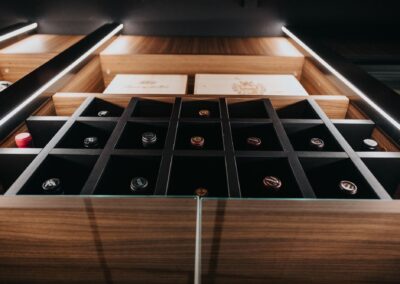Progettiamo arredi su misura per enoteche, unendo stile e funzionalità per valorizzare vini e ambiente.